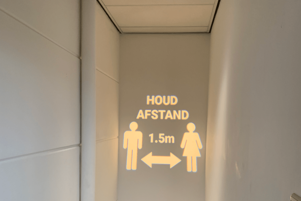 Iedereen kent de projecties wel in het grote zweedse woonwarenhuis. Ideaal om de route aan te duiden. Ook het projecteren van bijvoorbeeld een nooduitgang, aanwijzingen naar prullenbakken, toiletten, of namen van de betreffende zaal of ruimte is perfect te realiseren.