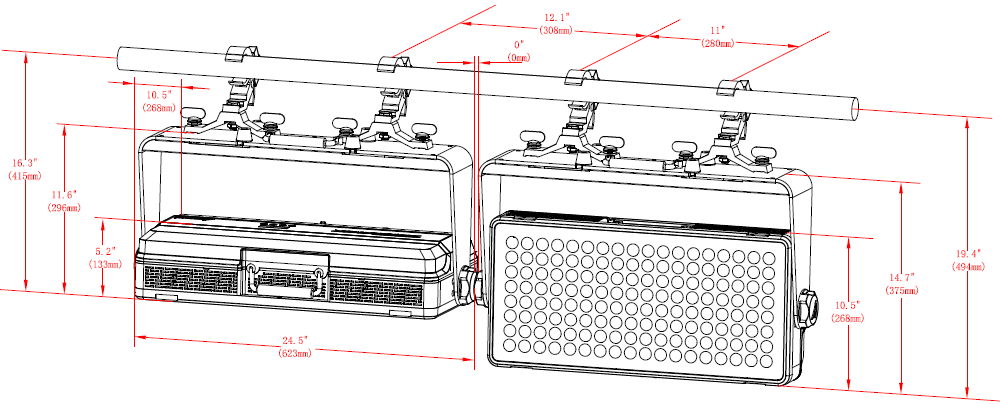 To achieve a stable, constant 1,500W output, the luminaire Features a unique thermal management design. The special aluminum alloy and surface treatment ensures maximum heat dispersion under any conditions. With its lifting yoke and extendable stands, the THUNDERBOLT is easy to transport and rig.