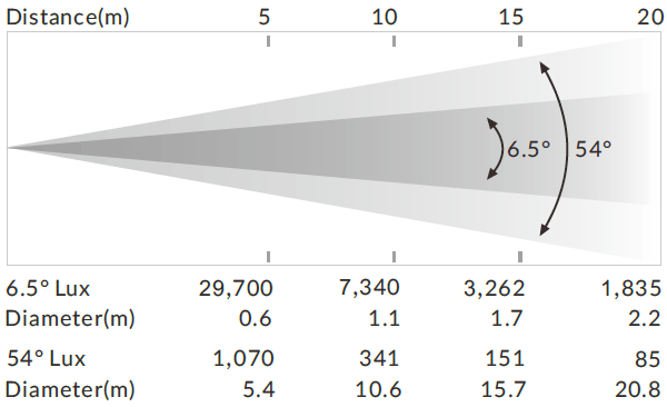 ACME AECO 5 uses an innovative 450W LED engine. The diameter of front lens is 120mm, its light beam is flat and smooth.