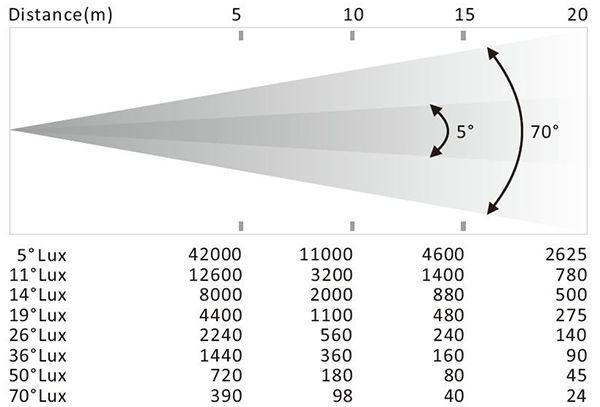 Lens Options:5°/11°/14°/19°/26°/36°/50°/70°