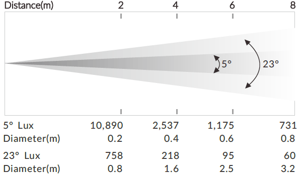 Beam Angle: 5°/23°