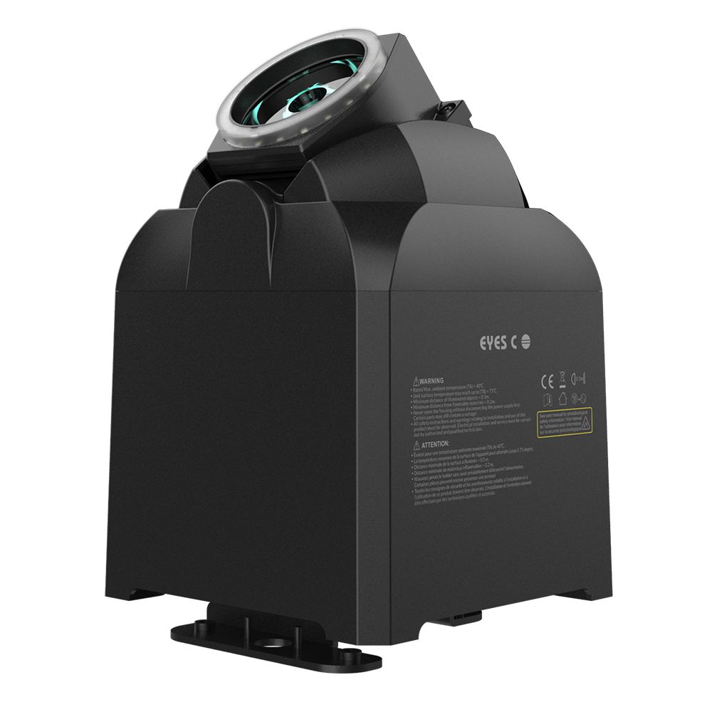 [vc_row][vc_column][vc_column_text]EYE C is suitable for various entertainment venues such as bars, KTVs, hotels, banquet halls, etc.The luminaire design is compact and lightweight, can realize horizontal and vertical uniform and fast splicing, and the shape is flexible and changeable; with a circular LED light ring, which integrates point-by-point control, circle control, stroboscopic, dimming, surface light and other functions, and uniform RGBW color mixing System and rainbow effect. The drawing effect can be achieved through the rotation angle of the XY axis, the uniform RGBW color mixing system and the rainbow effect, providing unlimited creative fun to the lighting designer.