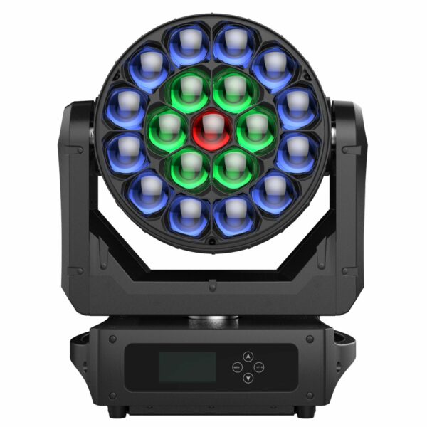 The ACME GLAMOUR 700Z is a higher upgrade on its own PAGENT 600Z II series. With the outstanding mechanical cooling structure and advanced finned heating dissipation technology. It offers a much powerful washing effect from a 700W stable output. The GLAMOUR is equipped with 19pcs 30W multicolor RGBW 4in1 LEDs that produce a vivid colors as well as excellent color mixing effect. It is also equipped with a motorized 1:10 zoom ratio from 5°-50° degree. Each ring of LED circle color can becontrolled independently, this unique ring Controlnot only allows you to create an endless ring chasing effect, but also to use each circle of LEDs ring as a graphic images that change dynamically in a circle. The 0-100% smooth dimming, flicker free management system and a recorded powerful output at 9,734 lm should be confident in most of stage application. What’s more, an optional 30W RGB-Y 4in1 LED version is available on GLAMOURE 700Z for TV or filming in excellent white color application rendering.