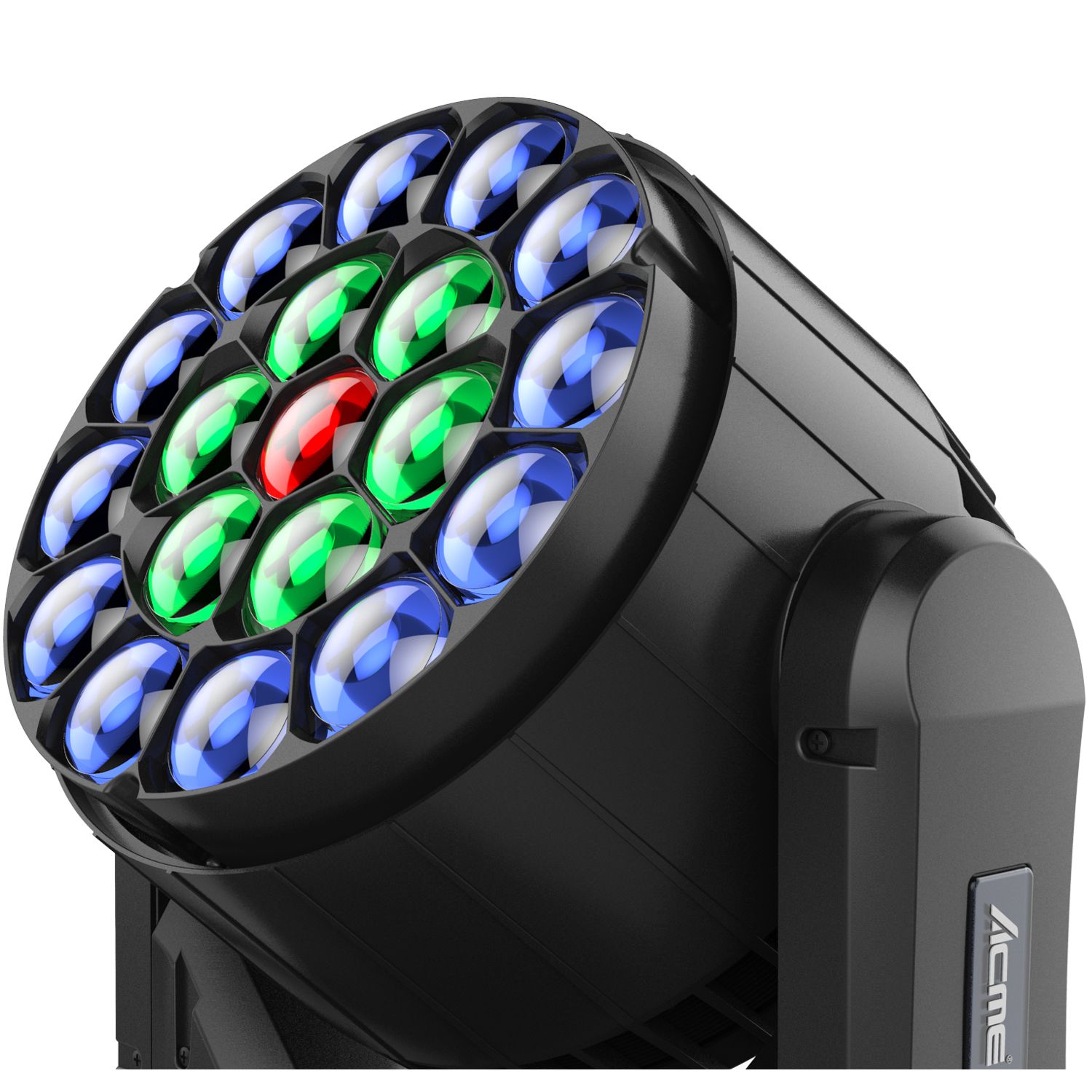 The ACME GLAMOUR 700Z is a higher upgrade on its own PAGENT 600Z II series. With the outstanding mechanical cooling structure and advanced finned heating dissipation technology. It offers a much powerful washing effect from a 700W stable output. The GLAMOUR is equipped with 19pcs 30W multicolor RGBW 4in1 LEDs that produce a vivid colors as well as excellent color mixing effect. It is also equipped with a motorized 1:10 zoom ratio from 5°-50° degree. Each ring of LED circle color can becontrolled independently, this unique ring Controlnot only allows you to create an endless ring chasing effect, but also to use each circle of LEDs ring as a graphic images that change dynamically in a circle. The 0-100% smooth dimming, flicker free management system and a recorded powerful output at 9,734 lm should be confident in most of stage application. What’s more, an optional 30W RGB-Y 4in1 LED version is available on GLAMOURE 700Z for TV or filming in excellent white color application rendering.