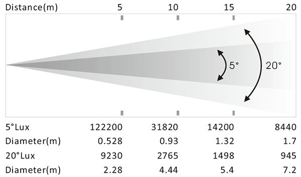 Beam angle: 5˚-20°