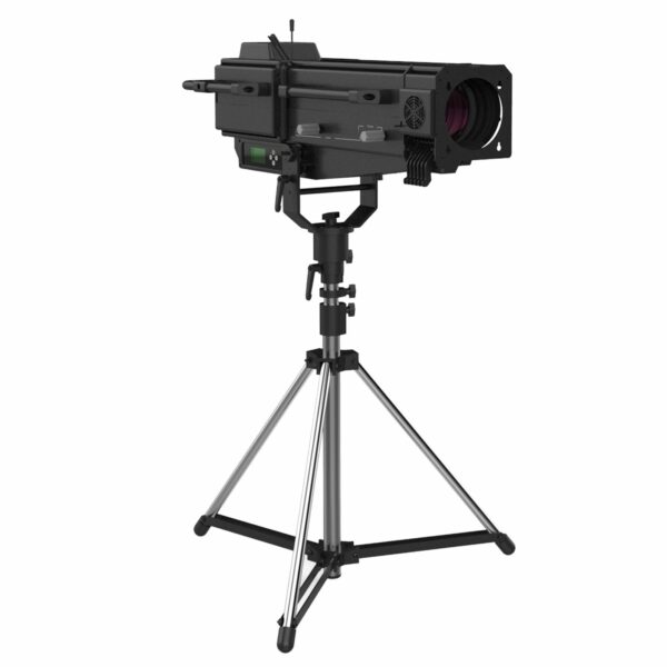 The ACME GLORY FOLLOWSPOT II Features an OSRAM Lok-it! 1000/PS Brilliant 1000W 6000K lamp, to project a crisp 6000K white light for exhibition and display applications, as well as a warm 2700K for stage performance. It has an adjustable iris range from 5% to 100%, a zoom ratio of 1:4 (5˚ to 20˚) and manual focus, plus a custom tripod which enables smooth pan and tilt movements. The GLORY FOLLOWSPOT II has a comfortable and stable feel for tracking performers. Not only can it project light with high CRI (>90), it also includes 7 different color temperature filters in the compact body, making a CCT range from 2700K to 5600K available by manual selection on the display, offering more possibilities for various applications and an excellent tracking effect. What’s more, a 5-slot manual boomerang is attached to the front of the unit for quiet color changing.