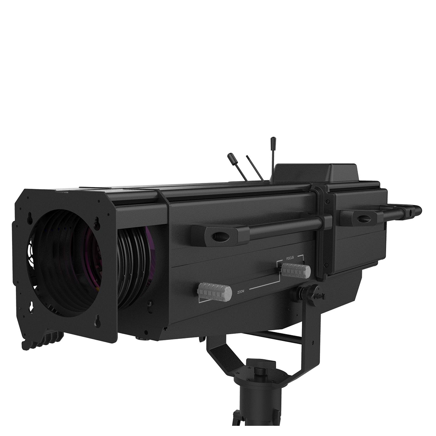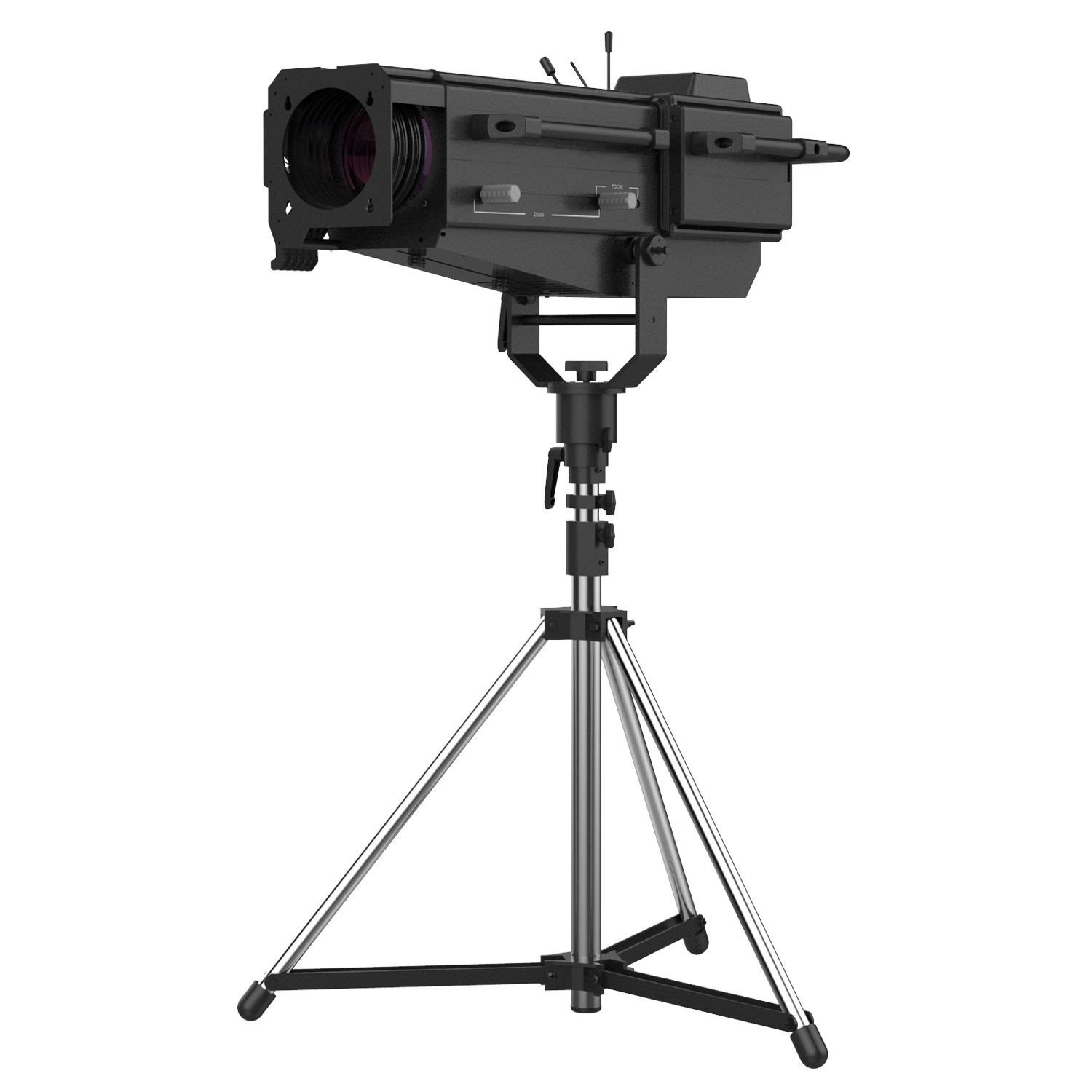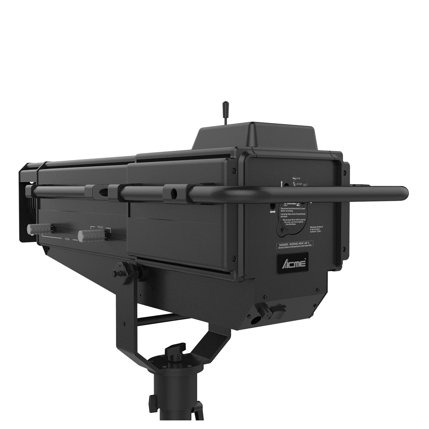 The ACME GLORY FOLLOWSPOT II Features an OSRAM Lok-it! 1000/PS Brilliant 1000W 6000K lamp, to project a crisp 6000K white light for exhibition and display applications, as well as a warm 2700K for stage performance. It has an adjustable iris range from 5% to 100%, a zoom ratio of 1:4 (5˚ to 20˚) and manual focus, plus a custom tripod which enables smooth pan and tilt movements. The GLORY FOLLOWSPOT II has a comfortable and stable feel for tracking performers. Not only can it project light with high CRI (>90), it also includes 7 different color temperature filters in the compact body, making a CCT range from 2700K to 5600K available by manual selection on the display, offering more possibilities for various applications and an excellent tracking effect. What’s more, a 5-slot manual boomerang is attached to the front of the unit for quiet color changing.