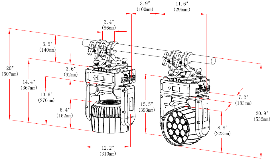 The ICARUS 320 has upgraded the light source from the PAGEANT 300Z II. It offers a washing effect by adding all the benefits of LED technology with lower energy consumption, longer lifespan, lighter weight and compact design. The ICARUS 320 is equipped with 19pcs 20W multicolor RGBW 4in1 LEDs that produce a vivid colors as well as excellent color mixing effect. It is also equipped with a motorized 1:6 zoom ratio from 10°-60° degree. Each ring of LED circle color can be controlled independently, this unique ring control not only allows you to create an endless ring chasing effect, but also to use each circle of LEDs ring as a graphic images that change dynamically in a circle. The 0-100% smooth dimming, flicker free management system and a reasonable output at 5,000lm should be confident for multi small to medium stage wash application.