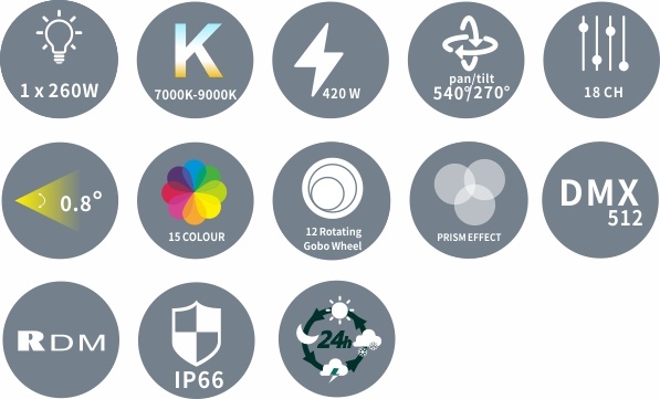 With robust construction and IP66 protection, its durable aluminum die-cast housing protects it from dust, sand, moisture, and liquids, making it ideal for use in all situations from dusty deserts to rainy fields. Perfect for festivals and outdoor shows, as well as installation in open-air applications and other outside entertainment spaces, this ground-breaking fixture offers an exceptional operational life and reduced need for maintenance, thanks to its sealed casing design. The KRAKEN has the characteristics of long-throw distance, strong penetration, intensive beam power, and ultra-high-quality color effect. It is born for the outdoor application market.