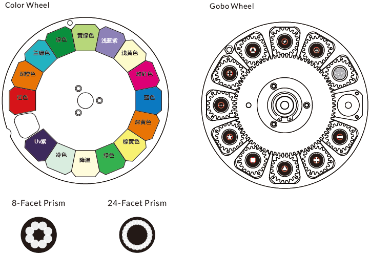 1 x 8-facet prism & 1 x 24-facet prism, rotatable in both directions and overlayable