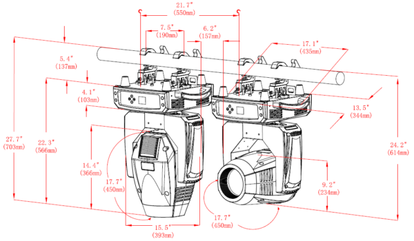 All these Features are packed into acompact, 21kg body, giving punchy, sharp beams (over 848,000 lux@5m) or wide washes of color.