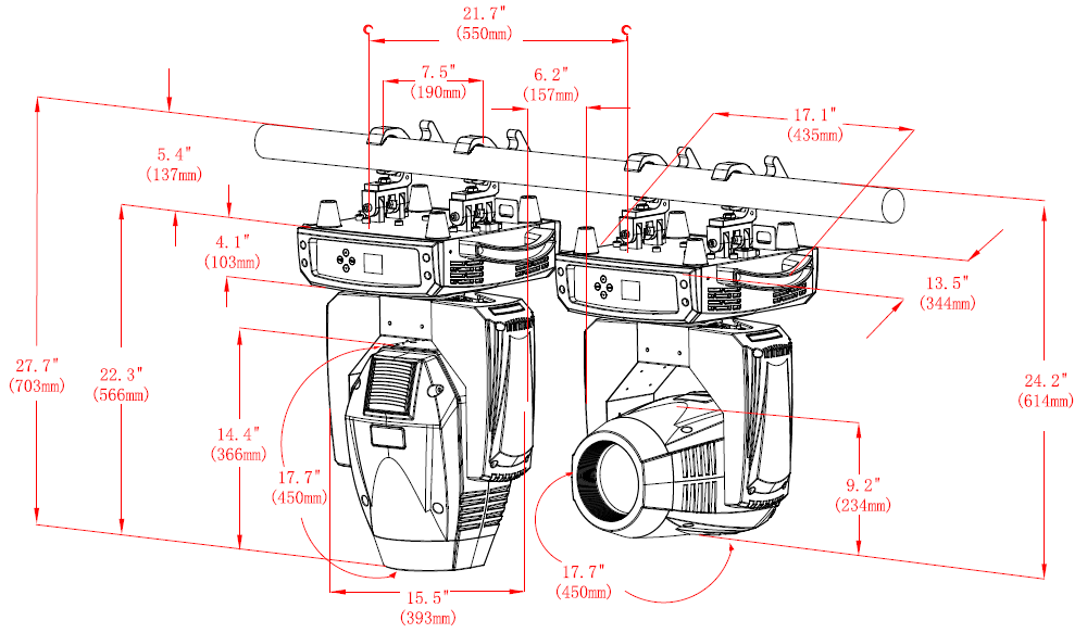All these Features are packed into acompact, 21kg body, giving punchy, sharp beams (over 848,000 lux@5m) or wide washes of color.