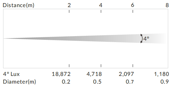 Optional Beam Angle: 4°/8°/12°/25°/45°