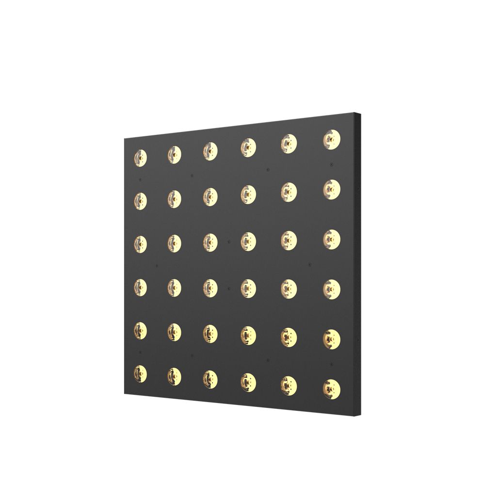 ANIMA W is an 6×6 3W WW matrix LED Panel at standard size 500x500mm.Optional beam angles at 4°/8°/12°/25°/45°.An ideal pixel mapping effect wall solution for any install application at a reasonable cost but also quickly create dynamic graphics and starlight effects. Easy multiple structure design, build-in macro preset, 0-100% smooth dimming, flicker-free operation, and very lightweight loading. Fitting for night club install, ballroom, entertaining lighting project, etc.