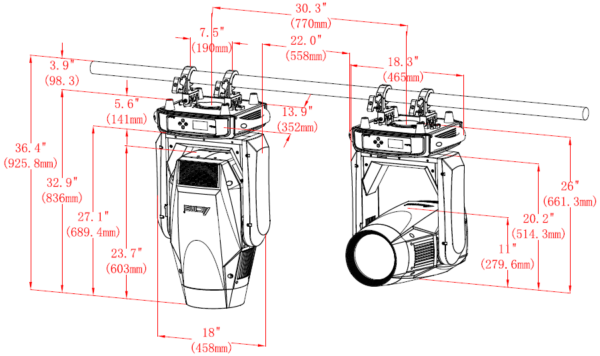 Framing shutters: 4x framing shutters, each individually controllable; Each shutter blade can block out light completely; framing module can be rotated at ±45°