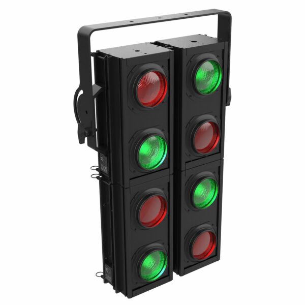 Brighter than the traditional audience blinder, with an outstanding variable speed strobe effect, RGBW color options and IPX4 protection rating, the STAGE BLINDER IP RGBW is suitable for large and medium-sized concerts, variety acts and other professional stage or entertainment applications requiring a striking visual impact.