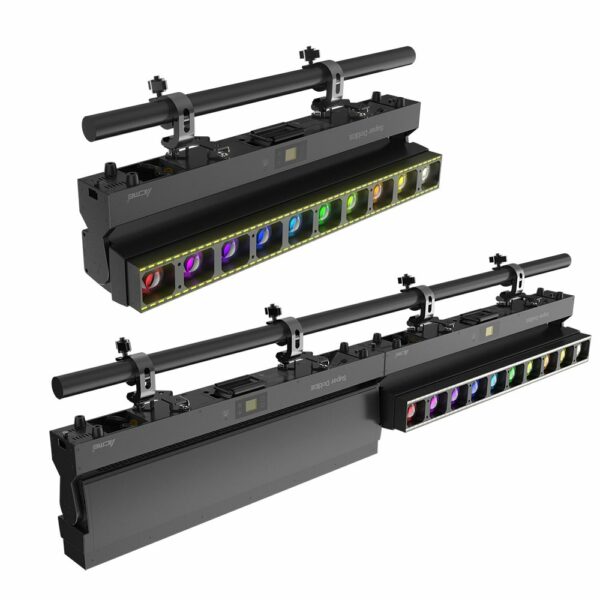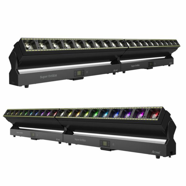 SuperDotline, a visual combination of beam, wash & strobe, an overall upgrade based on our classic DOTLINE360. The main light section features 10x60W RGBW LEDs providing high-brightness multicolored mixing lighting. Two Strobe sections have 12 individually controlled areas empowered by 96x3W LEDs of cold and warm white and 96×0.5W LEDs of RGB, delivering high-powered strobe effects at variable speeds. With a beam angle of 2.8°-31° and a field angle of 5°-46°, it can provide an intense and broad beam and wash effect at large spatial coverage. Motorized linear iris offers fast and smooth changes of effects. Unlimited placement such as hanging/ fast- interlocking/ up-right placement continues to expand its application for concerts, projecting charismatic in-air animations.