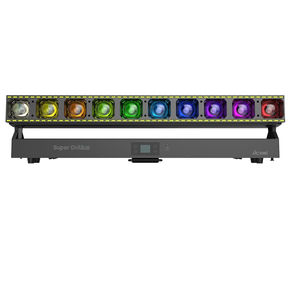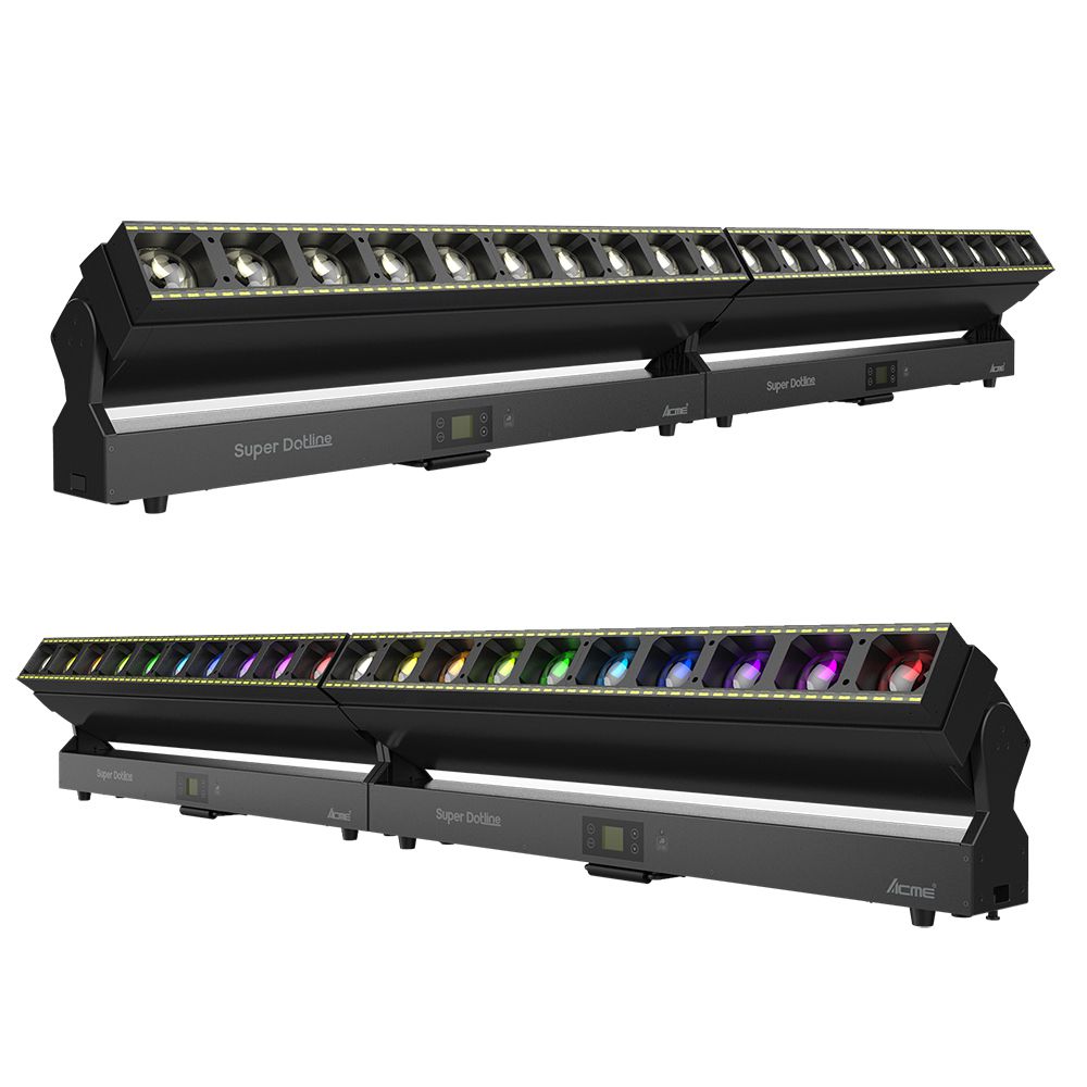 SuperDotline, a visual combination of beam, wash & strobe, an overall upgrade based on our classic DOTLINE360. The main light section features 10x60W RGBW LEDs providing high-brightness multicolored mixing lighting. Two Strobe sections have 12 individually controlled areas empowered by 96x3W LEDs of cold and warm white and 96×0.5W LEDs of RGB, delivering high-powered strobe effects at variable speeds. With a beam angle of 2.8°-31° and a field angle of 5°-46°, it can provide an intense and broad beam and wash effect at large spatial coverage. Motorized linear iris offers fast and smooth changes of effects. Unlimited placement such as hanging/ fast- interlocking/ up-right placement continues to expand its application for concerts, projecting charismatic in-air animations.