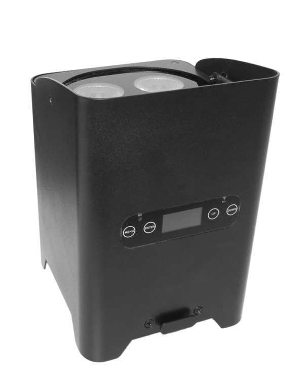 SMARTBV2PLUS is battery powered and wireless DMX led uplighters equipped with 4 pieces 10W quad color led RGBA (RGBW optional). Has a rechargeable lithium-ion battery with LG chem. Its battery can continue working 5 hours with led full color on, 8 hours when running built-in programs and around 12 hours if just running single color. Its battery is fully protected against overcharging to maximize battery life span. Equipped with wireless DMX transceiver (WDMX Sweden optional) which is 100% compatible with WDMX from Sweden. This ensures maximum stability of wireless DMX signal. Fixture can be wirelessly controlled as far as 400m within visibel distance. The fixture is also fully compatible to infrared remote control. Has an OLED display with touch buttons. OLED display monitors all working status. It can be set up to turn off from 10 to 60 seconds. OLED display is lockable to avoid button mistouch. Can be used not only as an uplighter but also as truss warmer. Its tilt can be manually adjusted 25 degrees if needed. It is absolutely ideal tools for mobile DJ/Bands, wedding, exhibitions, conference room, and hotel banquet halls etc..