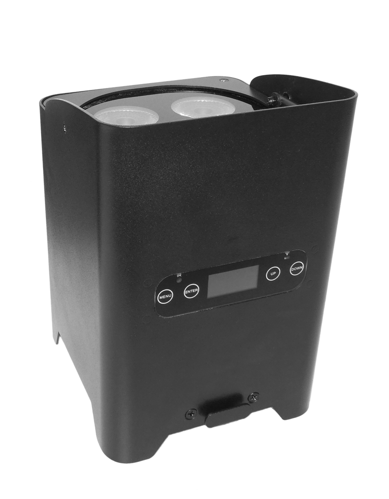 SMARTBV2PLUS is battery powered and wireless DMX led uplighters equipped with 4 pieces 10W quad color led RGBA (RGBW optional). Has a rechargeable lithium-ion battery with LG chem. Its battery can continue working 5 hours with led full color on, 8 hours when running built-in programs and around 12 hours if just running single color. Its battery is fully protected against overcharging to maximize battery life span. Equipped with wireless DMX transceiver (WDMX Sweden optional) which is 100% compatible with WDMX from Sweden. This ensures maximum stability of wireless DMX signal. Fixture can be wirelessly controlled as far as 400m within visibel distance. The fixture is also fully compatible to infrared remote control. Has an OLED display with touch buttons. OLED display monitors all working status. It can be set up to turn off from 10 to 60 seconds. OLED display is lockable to avoid button mistouch. Can be used not only as an uplighter but also as truss warmer. Its tilt can be manually adjusted 25 degrees if needed. It is absolutely ideal tools for mobile DJ/Bands, wedding, exhibitions, conference room, and hotel banquet halls etc..