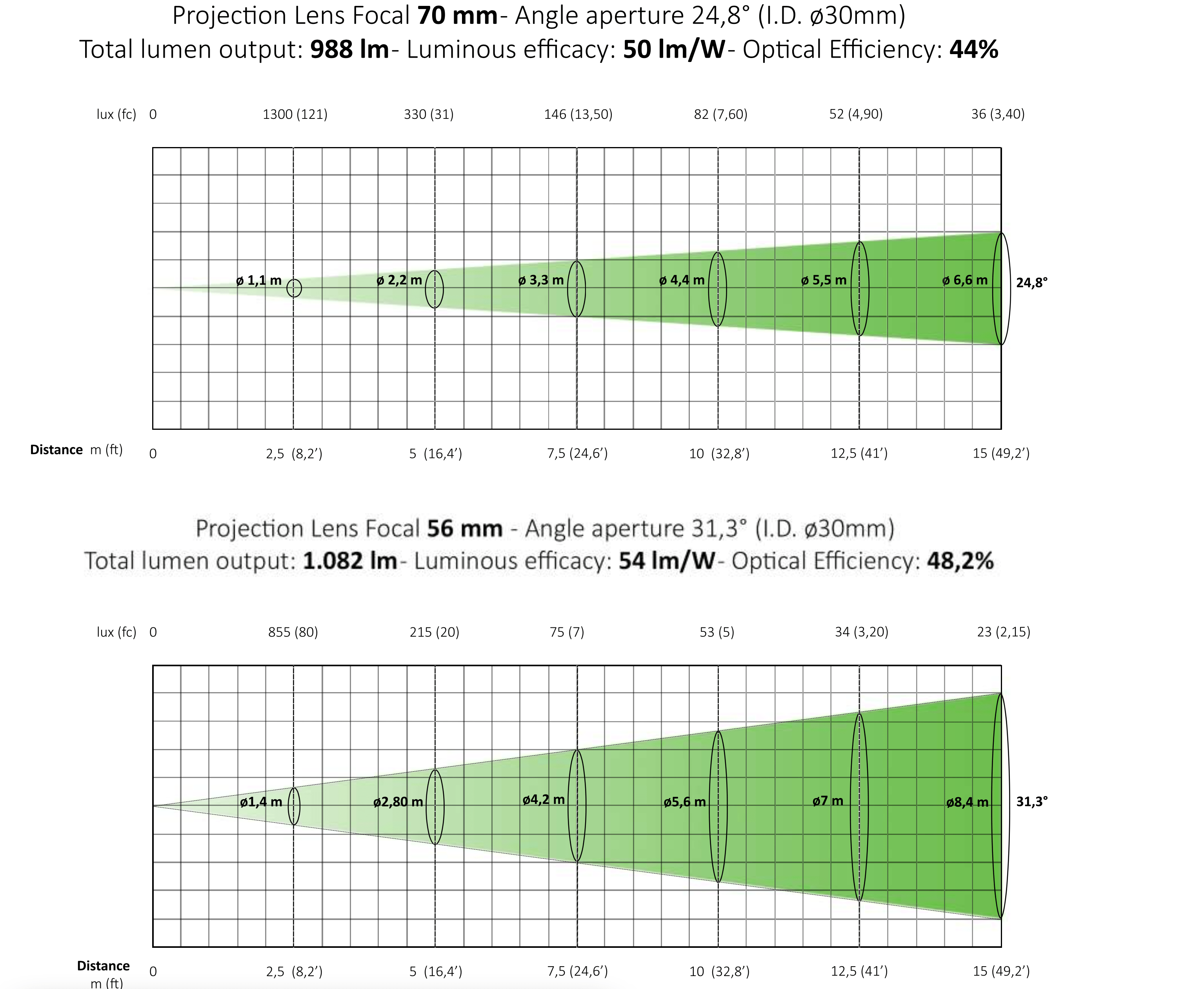 Door het gebruik van een hoogkwaliteit optiek is de Symp te gebruiken voor haarscherpe projecties. Het optiek is er in 2 afstralingen: 24.8º en 31,3º.