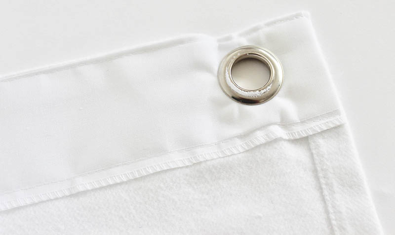 Theaterdoek van hoge kwaliteit in 160 gram per m2. In. De bovenrand zijn de ophangogen bevestigd, deze zitten 25 cm uit elkaar. De molton is boven en onder gezoomd