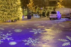 Klank en Licht / Stepin BV heeft 2x de nieuwe Goboservice Divum50 toegevoegd aan de verhuur en uiteraard gelijk ingezet om een sfeervol plein te creëren tijden de feestdagen.