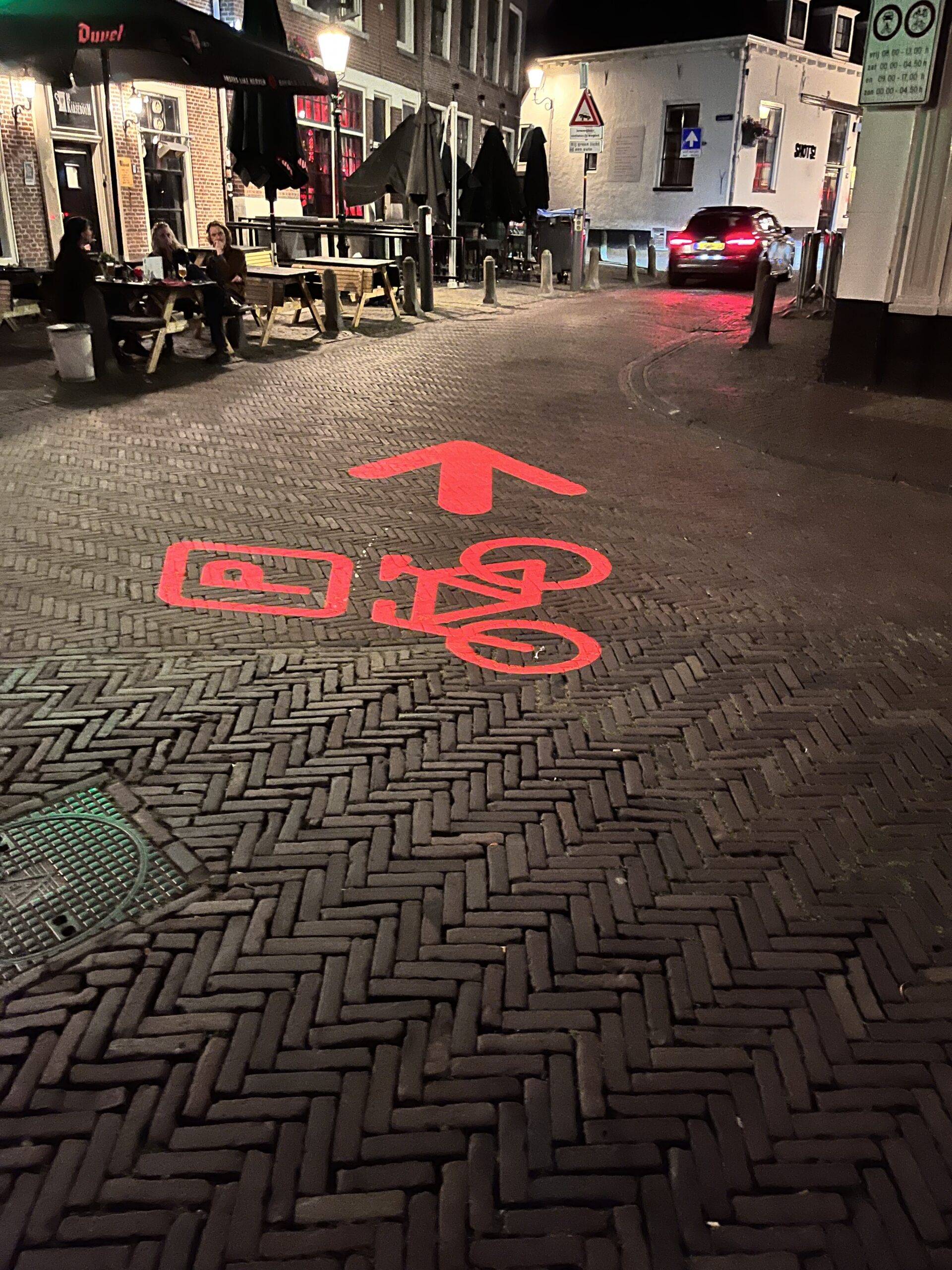 Op twee locaties is er een Signum75 goboprojector met costum gobo geplaatst. Elke projector wordt aangestuurd met een tijdschakelaar. Zo weet iedereen op vrijdag en zaterdag tussen 22:00 en 4:00 waar hij of zij zijn fiets neer kan zetten.