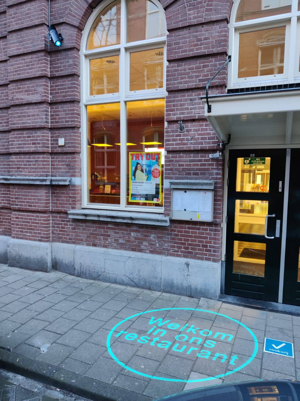 Het Heerlijk Amsterdam restaurant van ROC van Amsterdam | Flevoland wou graag extra opvallen aan de buitenkant.De perfecte oplossing hiervoor is natuurlijk gobo projectie.